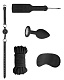 Introductory Bondage Kit №5 – набор, состоящий из 5 предметов для эротических ролевых игр и практик БДСМ. В комплекте: кляп-шарик, 2 маски, веревка, анальная пробка, шлепалка. Длина веревки - 10 м.