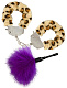 Эротический набор: леопардовые наручники и фиолетовая пуховка