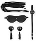 Великолепный набор аксессуаров для любителей БДСМ-игр. В комплект входят плеть, кляп, маска и пэстисы для украшения сосков. Плеть-флогер состоит из длинных хвостов и удобной рукоятки с петлёй для наматывания на руку или подвешивания на крючок. Кляп оснащён шариком с отверстиями для дыхания.