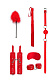 Beginners Bondage Kit – набор, состоящий из 6 предметов для эротических ролевых игр и практик БДСМ. В комплекте: кляп-шарик, наручники, поножи, маска, пуховка, плеть. Длина пуховки – 28 см.