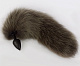Черная анальная пробка с натуральным кофейным песцовым хвостиком