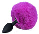 Черная анальная пробка с пушистым лиловым хвостиком зайки
