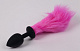 Черная силиконовая анальная пробка с розовым хвостиком