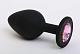 Черная силиконовая пробка с розовым кристаллом - 7 см.