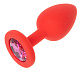 Красная силиконовая анальная пробка с лиловым кристаллом - 7,3 см.