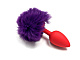 Красная силиконовая анальная пробка с пушистым фиолетовым хвостиком зайчика