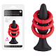 Черный плаг для анальной стимуляции из силикона. В наборе 3 красных силиконовых кольца, которые можно использовать на пенисе и мошонке. Диаметр колец - 3, 3,5 и 4 см.