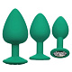 Набор из трёх зеленых анальных пробок с кристаллом Cheeky Gems
