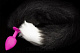Розовая силиконовая анальная пробка с черным хвостиком