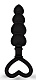 Черная рельефная анальная цепочка с ручкой-сердечком - 15 см.