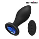 Черная вибровтулка с синим кристаллом и пультом ДУ - 9 см.