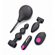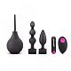 Набор для начинающих, подготавливающий к анальному сексу включает в себя: гигиенический анальный душ, виброэлемент на дистанционном управлении, небольшой силиконовый анальный плаг и анальную елочку из силикона.