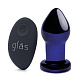 Синий стеклянный анальный вибратор с пультом ДУ - 9,5 см.