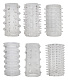 Набор из 6 эрекционных насадок прозрачного цвета на мужской половой орган. Выполнены из гипоаллергенного материала. Структура - с шипами, шишками и ребрами для большей стимуляции. Длина одинаковая, разница только в рельефе. Внутренний диаметр - 1,3 см.
