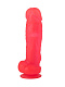 Податливая фаллическая игрушка, выполненная из гелевого материала, имеет в основании присоску для фиксации на плоскости.