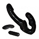 Чёрный безремневой страпон с вибрацией и анальным отростком