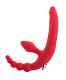 Красный безремневой страпон с вибрацией и анальным отростком