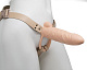 Телесный полый страпон на черных ремнях Hollow Silicone Strap-on - 17,8 см.