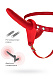 Красный страпон на ремнях с вагинальной пробкой - 15 см.