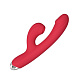 Красный силиконовый вибратор-кролик с вакуумным клиторальным отростком - 20,5 см.