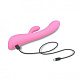 Ярко-розовый вибратор Angel с ребристым стволом, клиторальным отростком и нагревом - 19 см.