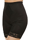 Корсетные панталоны средней степени коррекции. Особо скроенные уплотненные боковые швы позволяют уменьшить объем бедер на один-два размера. Невидимая вставка на животе утягивает его, создавая комфорт при носке. Нижний край изделия оторочен эластичным кружевом с силиконовой лентой. Есть скрытые 4 крепежа для подвязок для чулок.