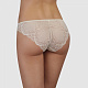 Трусы-бразилианы классического кроя со средней посадкой. Фронтальная часть из гладкой шелковистой микрофибры сочетается со спинкой, выполненной из эластичного кружева с цветочным орнаментом. Кружево углом переходит на гладкую фронтальную панель, декорируя линию талии. Свободный край кружева по линии бедер не передавливает и делает трусы незаметными под одеждой.