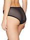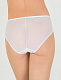 Трусы-хипстеры со средней посадкой. Фронтальная панель выполнена из микрофибры с сатиновым блеском и декорирована боковыми вставками из вышитого тюля. Задняя панель - из полупрозрачной ткани в сетку. Вырезы по линии бедер на спинке обработаны с подгибом. Ластовица: 100% хлопок
